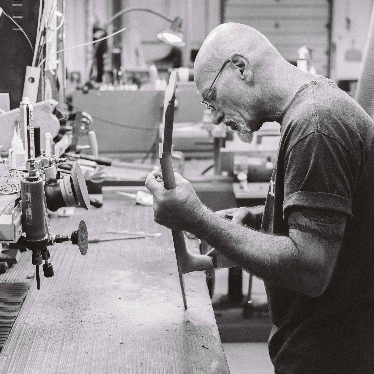 Dopo aver preso questa decisione sulla forma, il passo successivo fu quello di trovare un materiale più efficiente del legno, poiché era evidente che questo materiale, utilizzato nella costruzione delle chitarre, dal fondo piatto e dai lati diritti fin dai primi tempi delle Crociate, presentava notevoli limiti. Eccone alcuni: